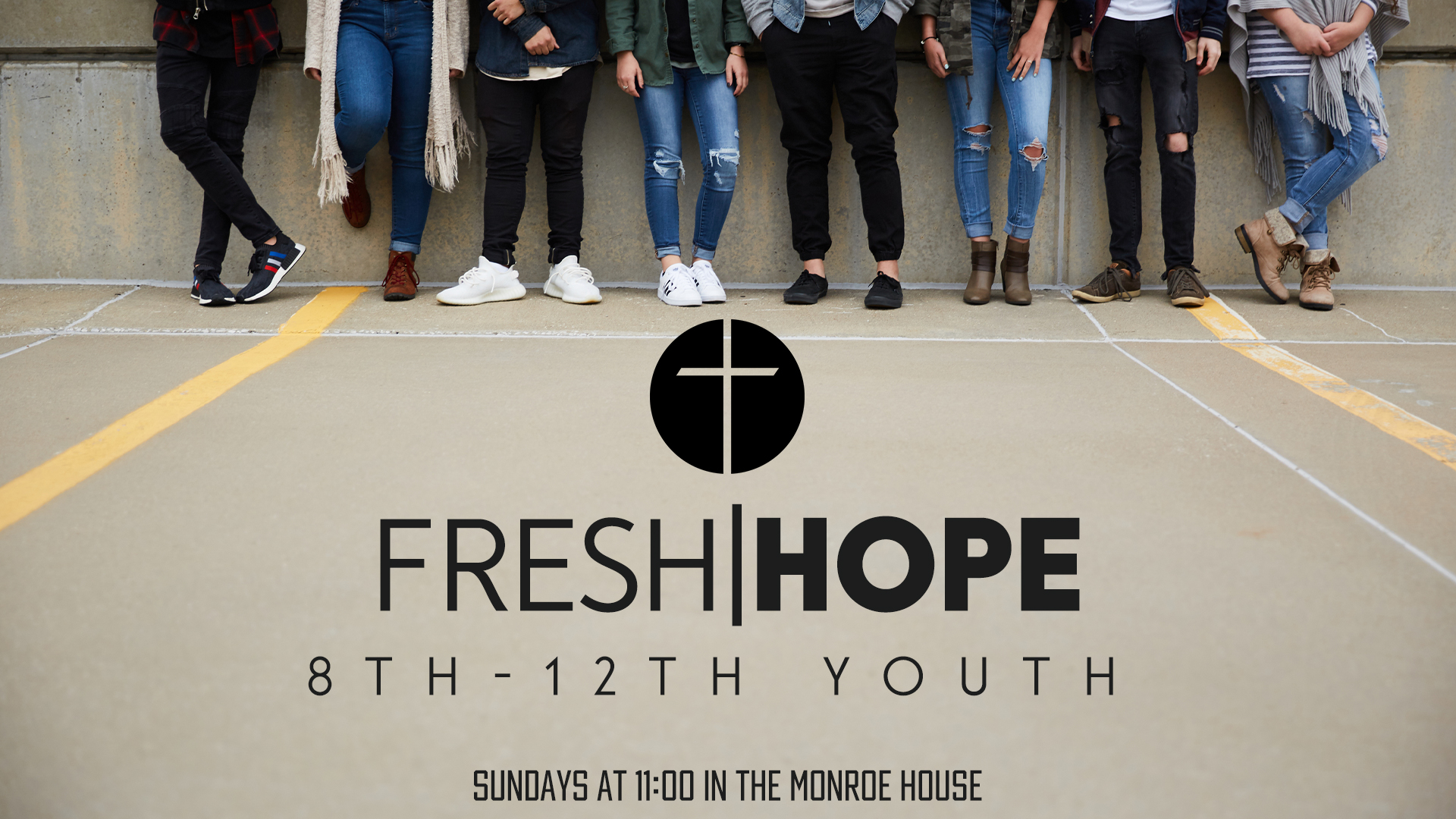 Future|Hope and Fresh|Hope are our youth programs covering 5th grade students to 12th grade students. We strive to give our youth a healthy, safe place to talk about their lives, faith journey, and to teach them head and heart knowledge about Jesus. We meet every Sunday from 11:00-1:00 in the Monroe House. We’d love to see you there!